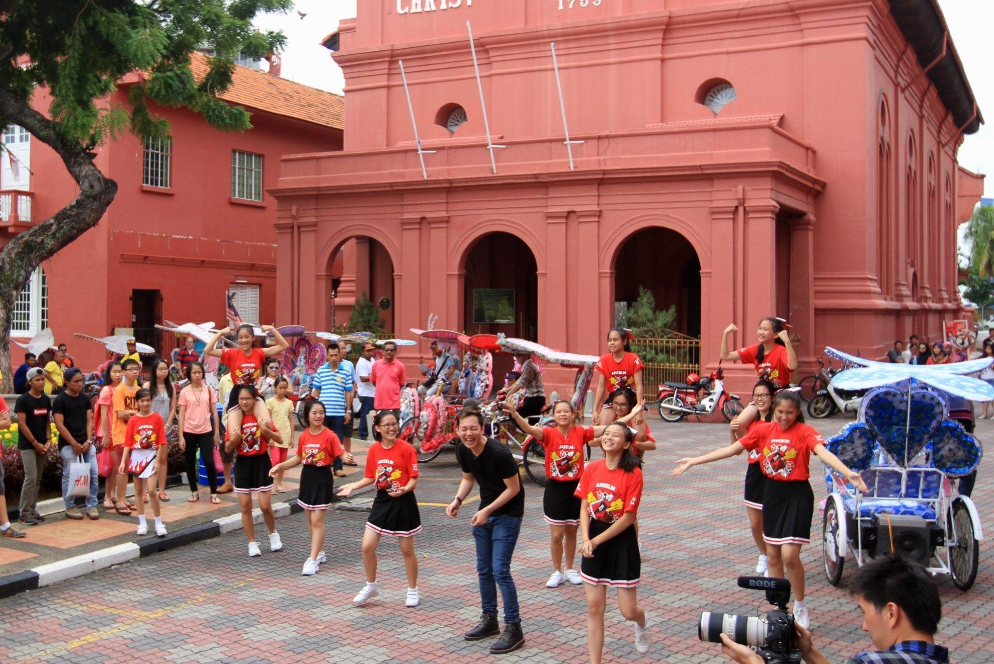 Jeremy and Team Anselm caused quite a stir when they performed the team’s cheer in front of Malacca’s historic Christ Church.