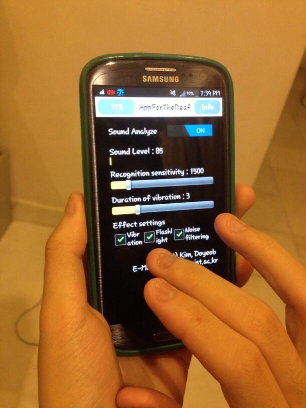 The app also has another special feature which alerts a person by causing the phone to vibrate and flicker when there is a loud noise in the vicinity.