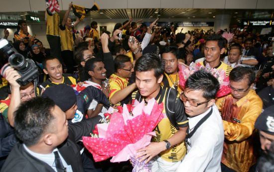 Safee Sali was all smiles as he arrived back in KL to a hero’s reception, but his mind was only on seeing his wife and kids again. By the way, that trophy he’s holding is for the AFF Suzuki Cup top scorer award.