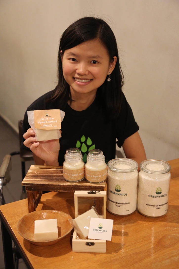 She runs an organisation – Greenyards – almost single-handedly, collecting disposed cooking oil and recycling them into candles, bar soap and washing powder, which are then sold online and in a physical store.