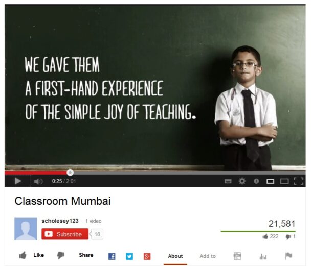 In Classroom Mumbai, “classrooms” were set-up in public spaces – shopping malls, airports, promenades, etc. – and members of the public were invited to experience the joy of teaching.