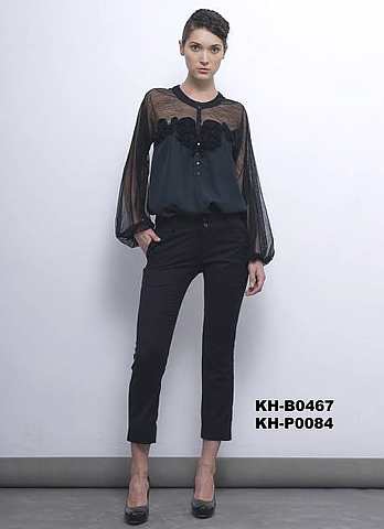 For less formal occasions, pair a full-lace long-sleeved, high-neck blouse with a high-waisted, knee-length skirt to achieve a good balance between sexy and elegant.