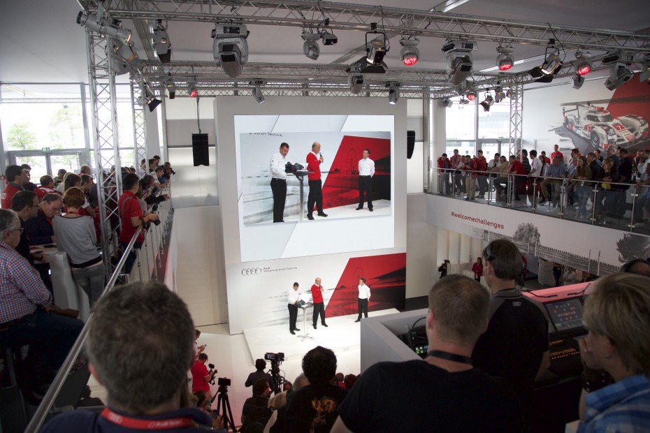 We arrived at Le Mans around 11am the day before the race, and by 2pm, we were at the Audi Racing Arena for the the team’s press conference. That means interviews with the team’s drivers, including current Le Mans champion Andre Lotterer from Belgium.