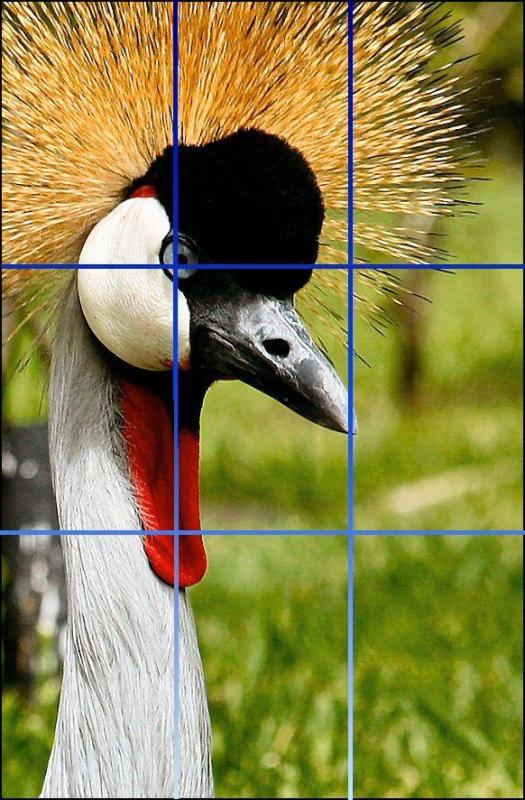 If you are capturing a close-up face shot, place one of his eyes at one of the four intersections as well.