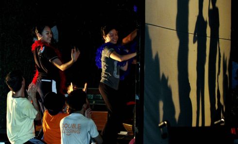 You see, what Fairuz and Sarah do can be loosely defined as “devised moving visual art”. Imagine painting, splashing colours on canvas, doing puppetry, shadow play and more and projecting it live to an audience.