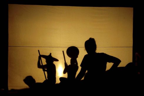 In shadow theatre, the actors don’t just play human characters but also contort their bodies to create the impression of buildings, animals and everything else that they need to tell a story.