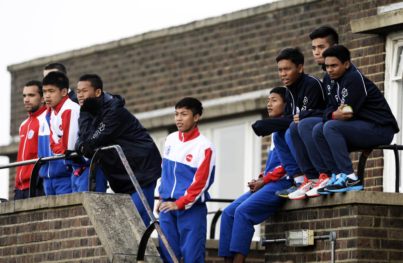 The winners of the AirAsia QPR Coaching Clinic from Malaysia and Singapore going through some drills at the QPR academy in London.