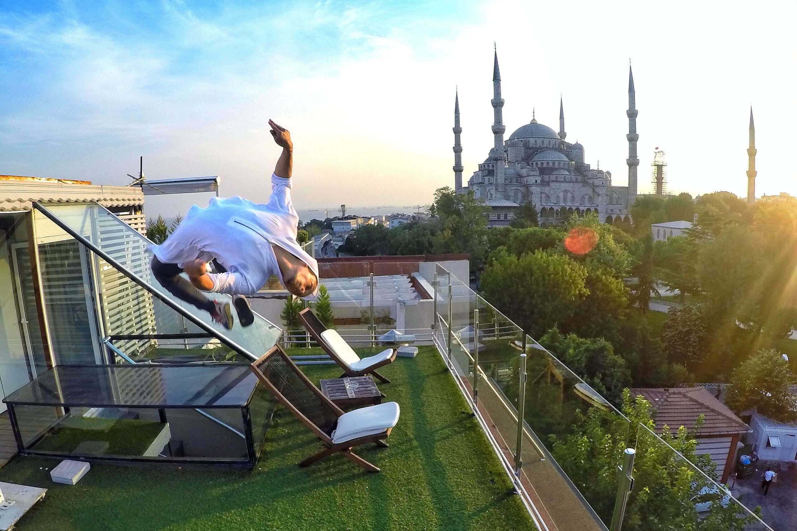 High flying Alsagoff in mid-air performing a back flip – he recommends beginners to start with the basics and then progress to more advanced maneuvers.