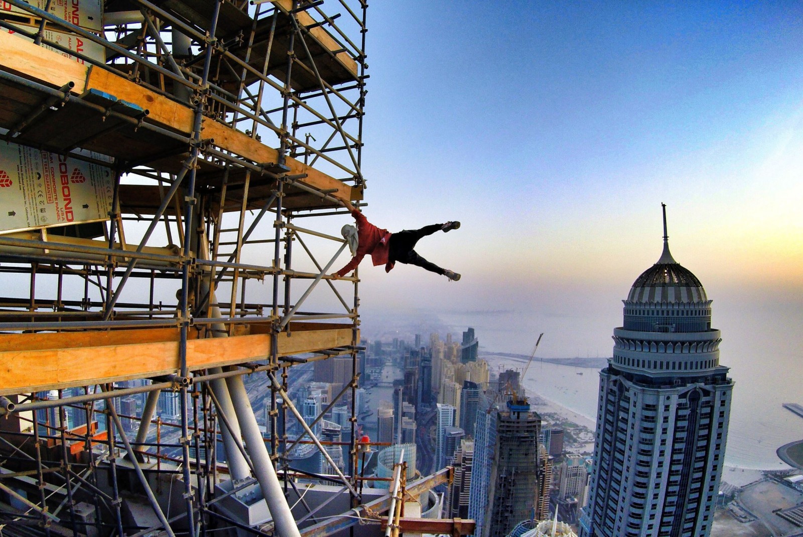 In July this year, the 24-year-old climbed 200 flights of stairs to the top of the the 400m 101 Marina in Dubai and performed the human flag (a stunt where the body is parallel to the ground supported only by a vertical bar).