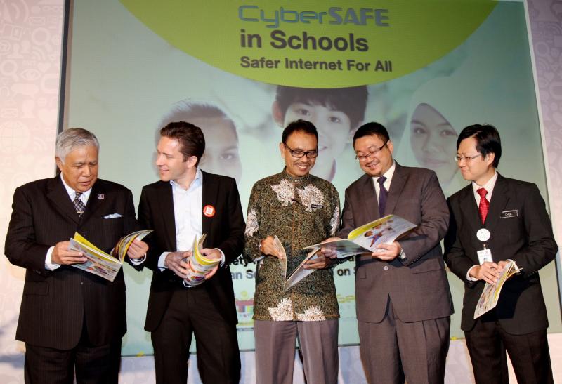 The results of the CyberSAFE in Schools cyberbullying survey being unveiled by representatives from DiGi, CyberSecurity Malaysia, the Ministry of Education and the Ministry of Women, Family and Community Development.
