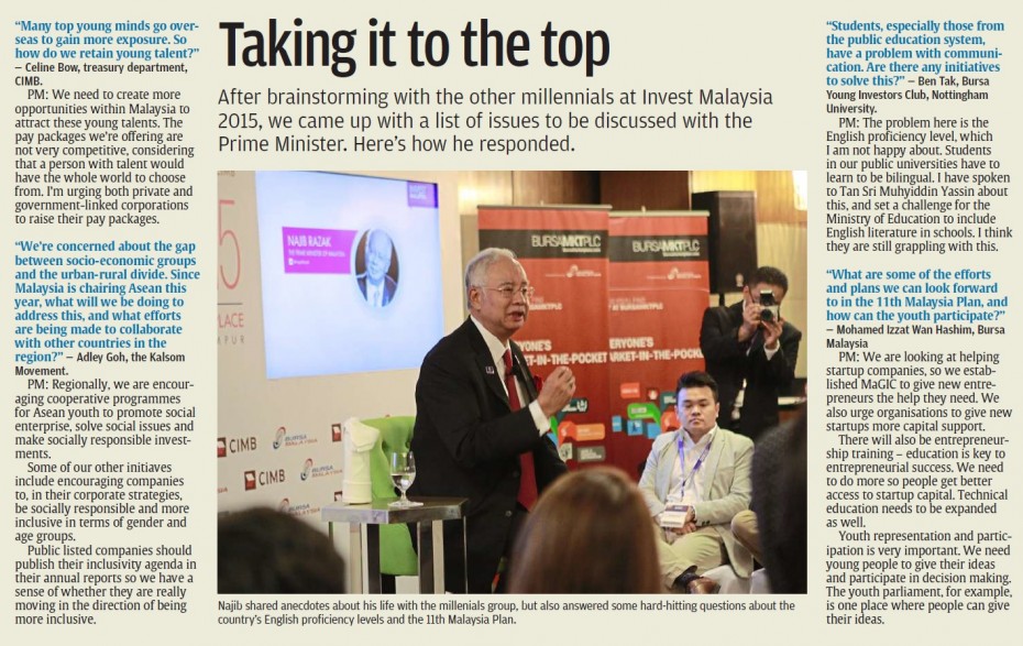 The young people at Invest Malaysia 2015, organised by Bursa Malaysia, were a lucky bunch as they attended a closed-door session with Nazir and Najib, which no one else at the event had.
